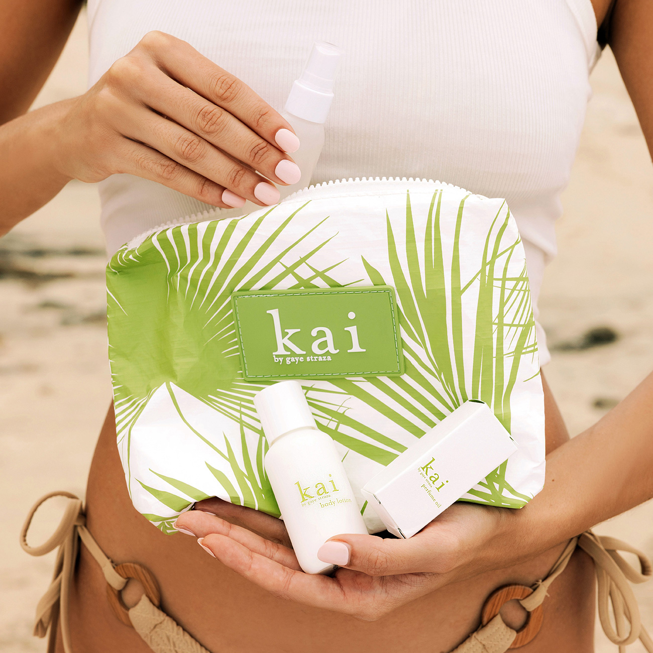 kaiとALOHA Collectionによる、数量限定のスペシャルセット。kaiのシグネチャーグリーンで仕上げた人気ポーチに、定番アイテムのミニサイズを詰め込みました。軽量で撥水性のあるポーチと、香りを重ねて楽しめるフレグランス&ボディケア。旅先から日常まで、美しく寄り添う、上質なひとときを演出するセットです。 セット内容: パフュームオイル、ボディグローミニ、ボディローションミニ ■パフュームオイル (original) エッセンシャルオイルを配合したロールオンタイプのパフュームオイル。エキゾチックホワイトフラワーの香りを、そのまま肌にまとうようにつけていただけます。トップセラーを誇る人気アイテムの一つ。 サイズ: 約3.6ml ■ボディグロー ミニ (original) 肌に艶やかな輝きと潤いを与える、スプレータイプのフレグランスボディグロー。エキゾチックホワイトフラワーが香るオイル成分が、健康的なツヤ肌を演出して、乾燥からオールシーズン守ってくれます。夏のビーチやパーティーなど、様々なシーンで活躍する万能スプレー。 サイズ:約29.6ml ■ボディローション ミニ (original) エキゾチックホワイトフラワーの香りに、シアバターやキュウリ果実エキスなどの、保湿成分を配合。お風呂上がりやお出かけ前にお使いください。しっとりしながらも軽い付け心地で、香水よりも柔らかに香ります。 サイズ:約59ml